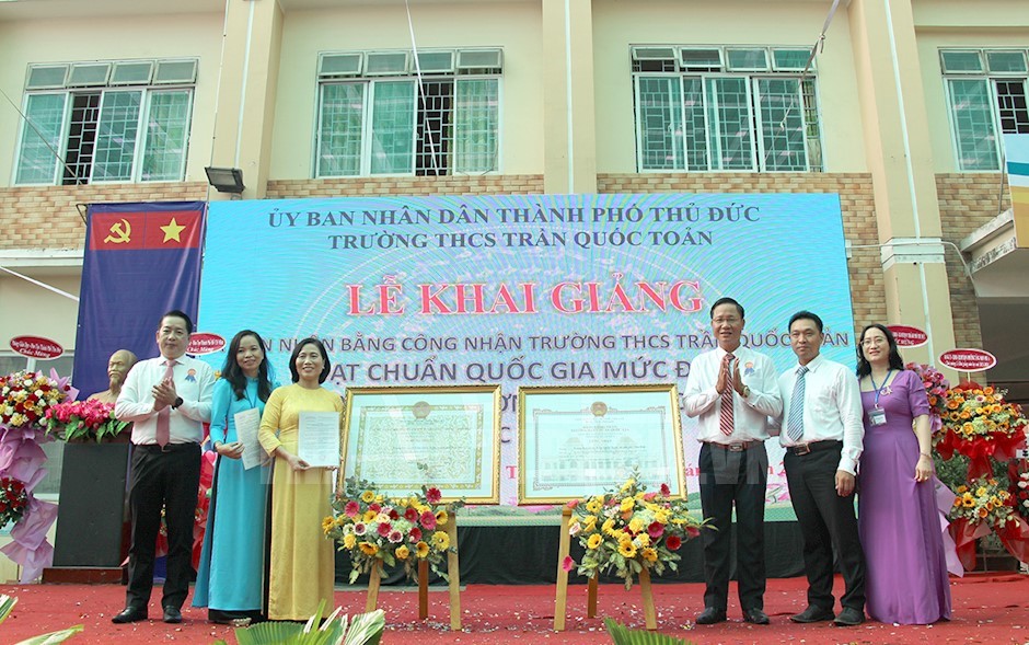 Dịp này, Trường THCS Trần Quốc Toản vinh dự đón nhận Bằng công nhận đạt chuẩn Quốc gia mức độ 1 và đạt kiểm định chất lượng giáo dục cấp độ 2.