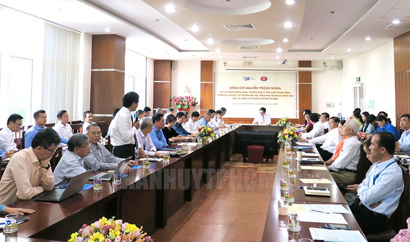 Phát biểu tại buổi làm việc, Trưởng ban Tuyên giáo Trung ương Nguyễn Trọng Nghĩa đánh giá cao công tác đào tạo, bồi dưỡng, phát triển nguồn nhân lực làm công tác báo chí, xuất bản, truyền thông của Trường Đại học Khoa học xã hội và Nhân văn, Đại học Quốc gia TPHCM.